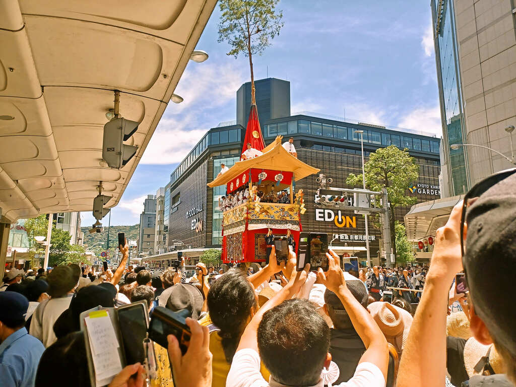 天気の良さと相まって山鉾は綺麗で迫力があって、とても良かった。ただ暑すぎる。じっと見ているだけで汗が流れてくる。詳しくは知らないが鷹山や大船山は見ないとと思って待っていたが、かなり参ってしまった。
